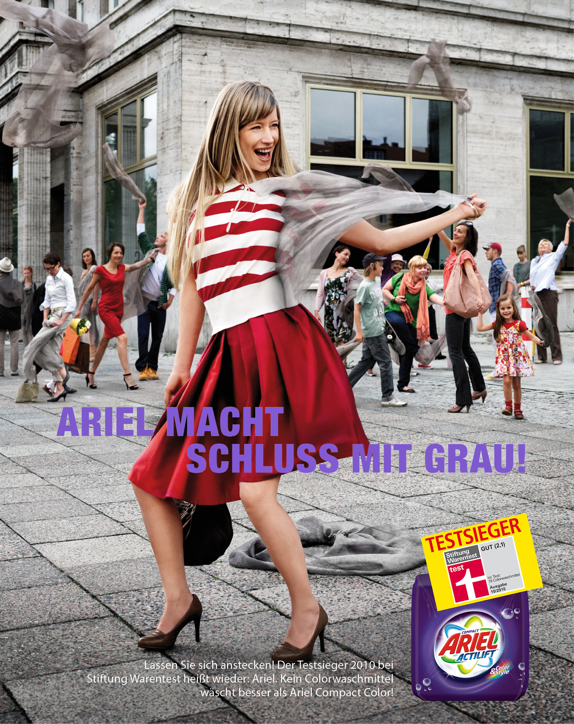 Quit with the grey with Ariel Actilift. In this project, we’ve been working with New York photographer Peter Funch. He has a unique style for taking photos of several people, which we used for the background.