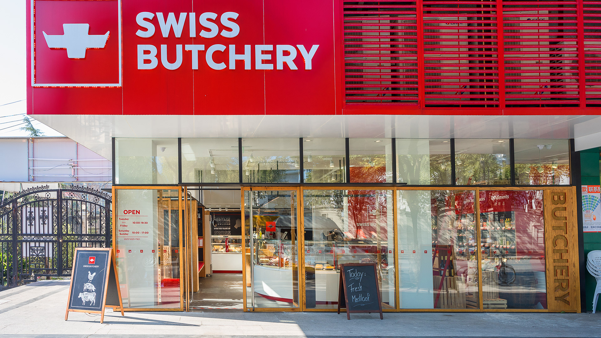 We developed an iconic and timeless corporate design that really stands out in the Chinese meat market. Together with the architects from linehousedesign we also developed the extension of the corporate design into the interior of Swiss Burtchery’s first store in Shanghai.